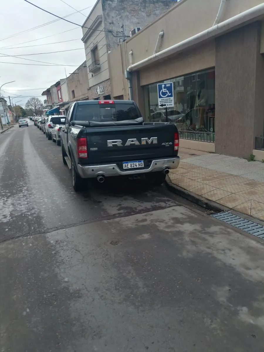 Ayer por la mañana, un vecino que pasó por el centro de Viedma se indignó al ver una camioneta Dodge Ram 4X4 mal estacionada y con el agravante de obstruyó una rampa para personas con discapacidad.