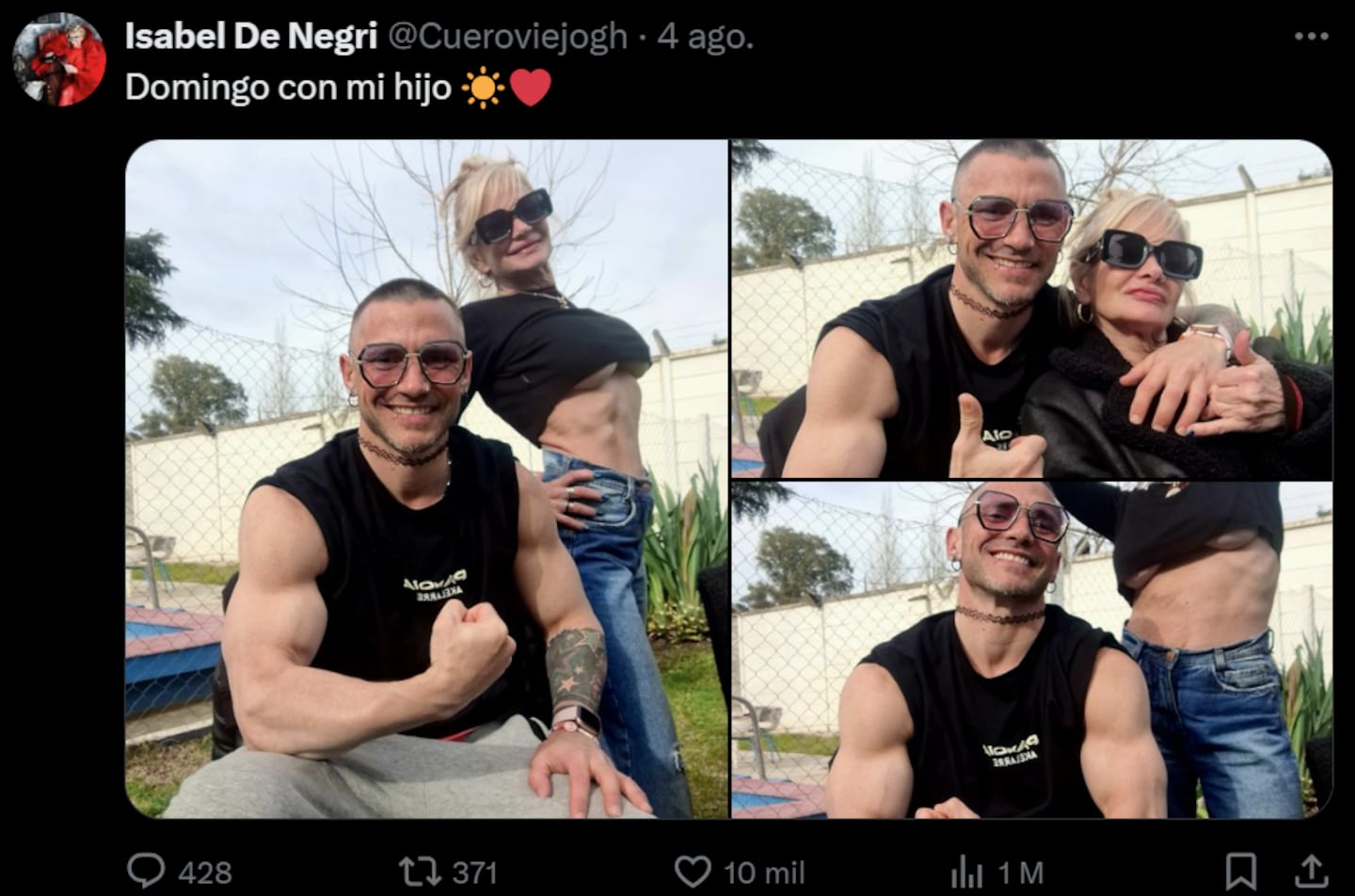 Uno de los comentarios más destacados rezaba: 'Das vergüenza! Sos todo lo que ninguna mujer quiere ser a tu edad'. De Negri, sin mostrar signos de turbación, respondió con sorna: 'Woooow que manera de lastimarme (ponele) Algo más? Jajaja amo los hater'. Esta actitud desafiante continuó ante otro mensaje que decía: 'Imagina sacarte una foto con tu mamá mientras muestra las tetas'. La respuesta de Isabel fue rápida: 'Imagínate que los prejuicios los tengas vos y no mi hijo, ni yo'.