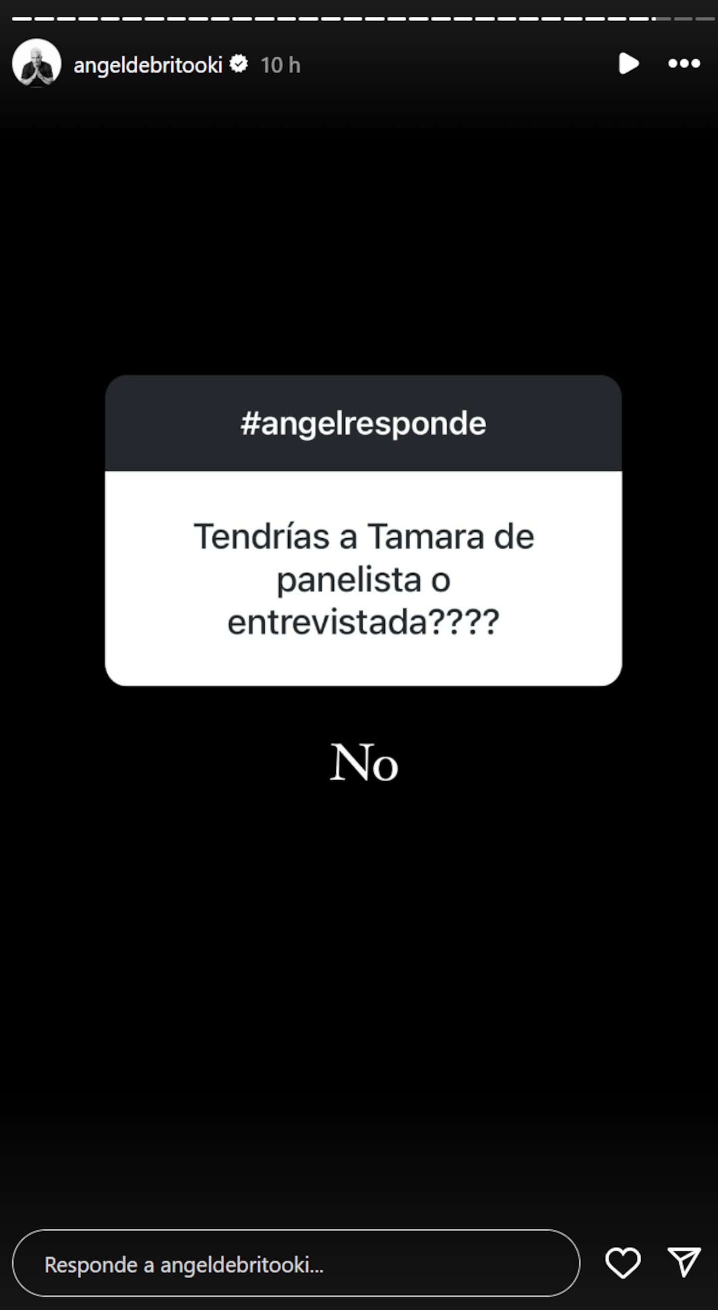 La especulación alcanzó su punto más álgido cuando seguidores, a través de la cuenta de Instagram de Ángel de Brito, lo interpelaron directamente: '¿Tendrías a Tamara de panelista o entrevistada?' La respuesta no se hizo esperar, y fiel a su estilo, Ángel optó por dejar clara su posición pero evitando al mismo tiempo avivar la controversia existente. Un sencillo 'No' fue su respuesta, evidenciando un rechazo tajante a la idea.