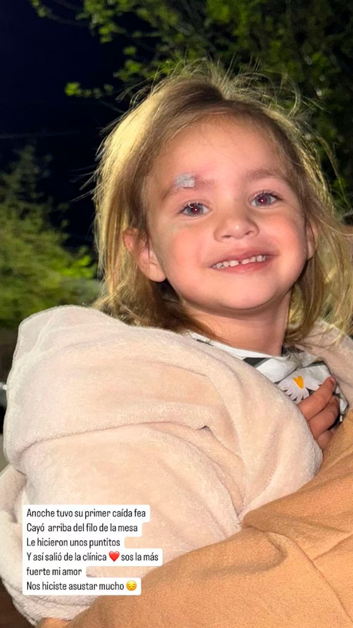 Una vez superado el susto inicial y ya en un estado más tranquilo, Tamara volvió a sus redes para compartir una foto de su hija recuperándose, acompañada de un mensaje emotivo y de agradecimiento a quienes mostraron su apoyo. "Anoche tuvo su primera caída fea. Cayó arriba del filo de la mesa. Le hicieron unos puntitos y salió así de la clínica", comunicó, reflejando el alivio por saber que su hija estaba bien y compartiendo la experiencia como una lección de los riesgos. presentes en los hogares.