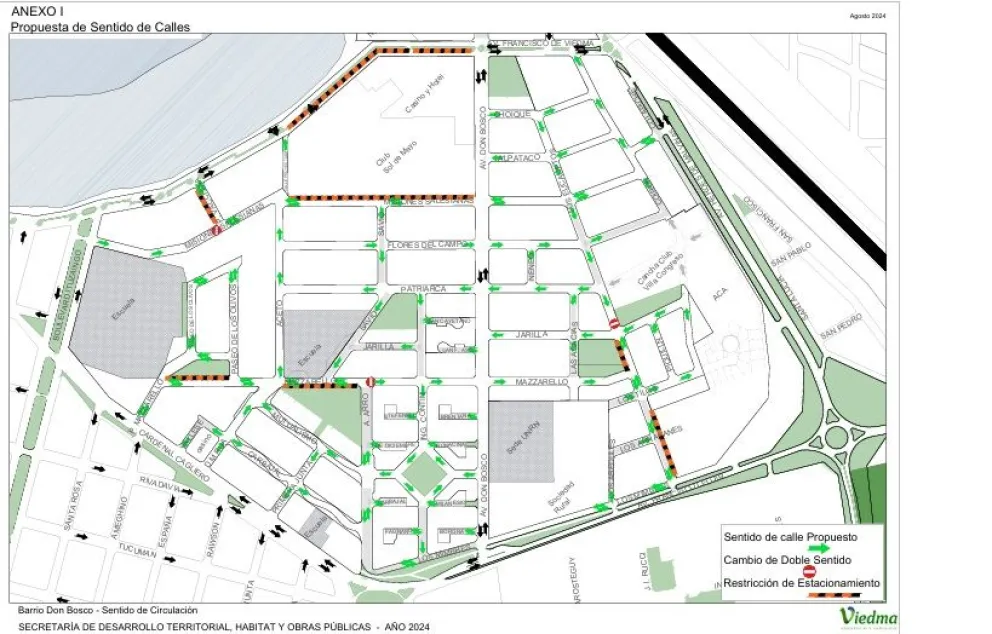 En su última sesión, el Concejo Deliberante de Viedma aprobó una ordenanza que introduce cambios en los sentidos de circulación de casi todas las calles del barrio Don Bosco y varias del barrio Zatti. Esta medida busca aliviar la congestión vehicular que afecta a estas zonas en horas pico, particularmente debido al flujo de vehículos particulares y al paso de líneas de colectivos.