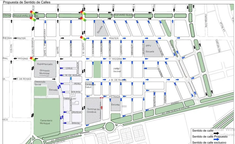 Además, todas las calles perpendiculares a estas dos vías principales —Piedrabuena, Resistencia, Estomba, Lamadrid, Reconquista, Liniers, Miranda, Murillo y Perú— tendrán un único sentido de circulación. Estas calles son paralelas entre sí y alternarán su dirección: mientras una tendrá un sentido norte-sur, la siguiente tendrá el sentido contrario, y así sucesivamente.