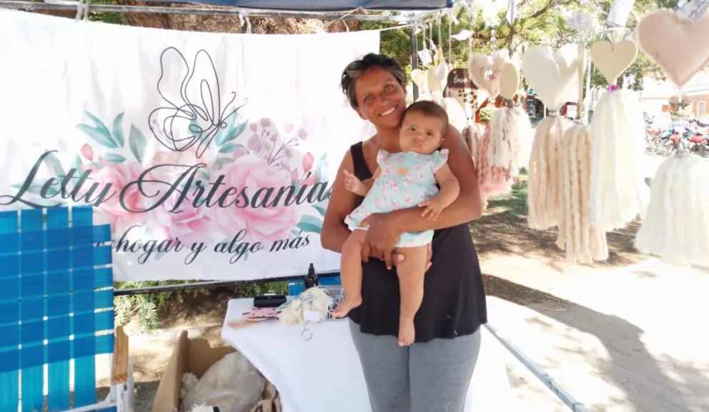 Madre de una bebé llamada Briana, Leticia lleva a su hija a todos lados, incluyendo su puesto de ventas, lo que refleja su compromiso tanto con su familia como con su empresa. “Hago todo tipo de artesanías, incluso  a pedido, que pueden ser para regalos, como souvenirs, etc. En Navidad me ha ido muy bien”, expresó con entusiasmo.