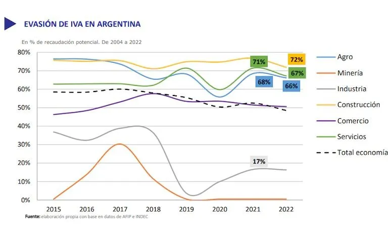 Según los investigadores Diego Rivas y Lucio Cardinale, la evasión del IVA en la Argentina en 2022 fue la más baja de las últimas dos décadas.