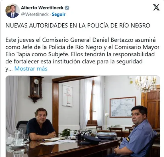 Weretilneck designó a Daniel Bertazzo como Jefe de la Policía