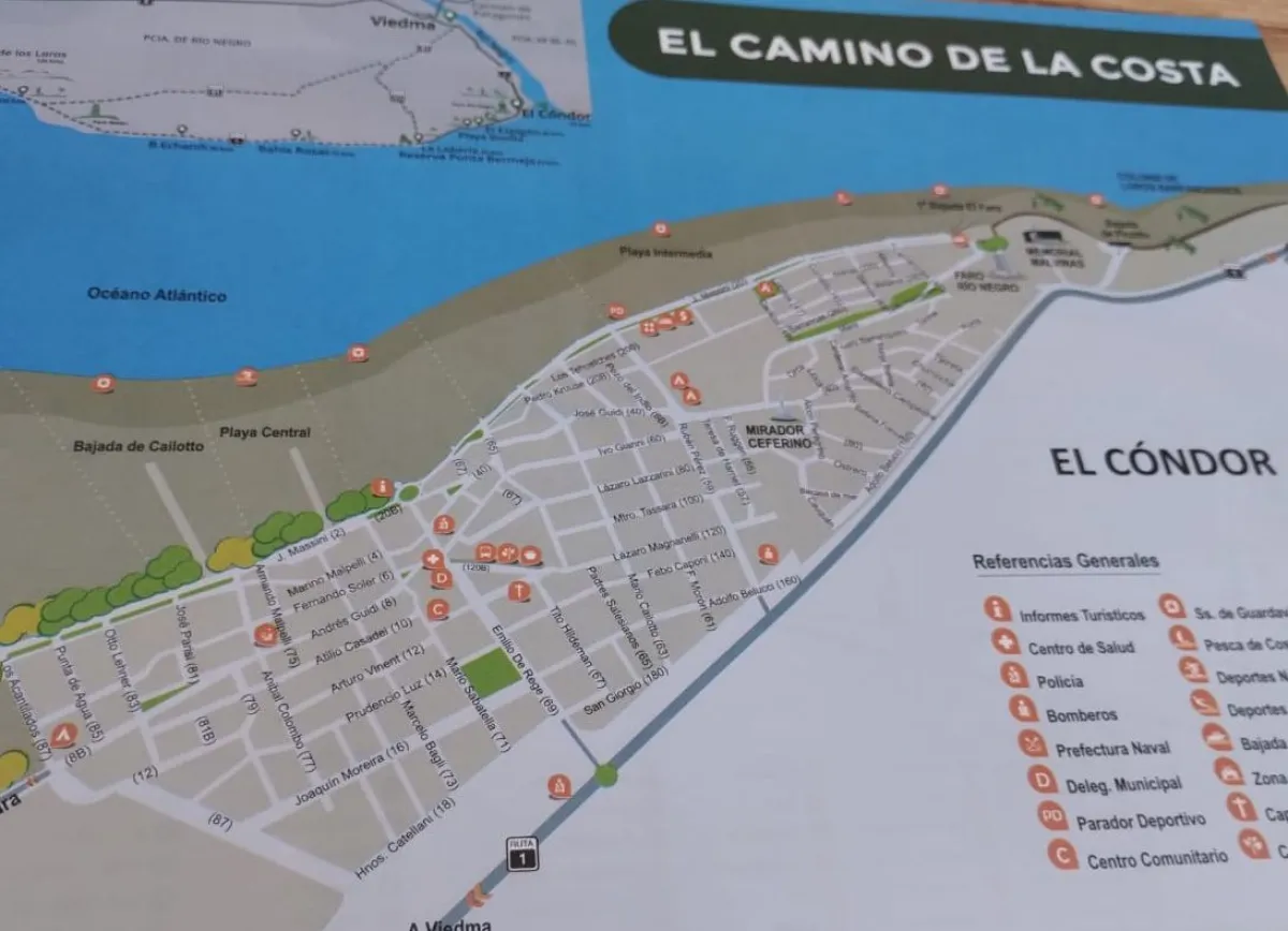 El recorrido del Camino de la Costa, en unos 200 kilómetros que se inicia en el balneario El Cóndor, las playas intermedias son Playa Bonita, La Lobería, Bahía Rosa, Bajda de Echandi, Bahía Creek, Caletas de los loros, y concluye en el puerto de San Antonio Este (SAE) tiene el potencial de la naturaleza a pleno y un costado de debilidad. Sobre este punto, los guías aclaran a los visitantes que “no hay servicios” en el trayecto salvo dos bocas de expendio en Bahía Creek.
