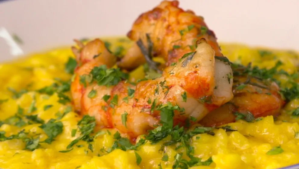 Prepara risotto de langostinos salteados con miel y estragón con una receta fácil y rápida