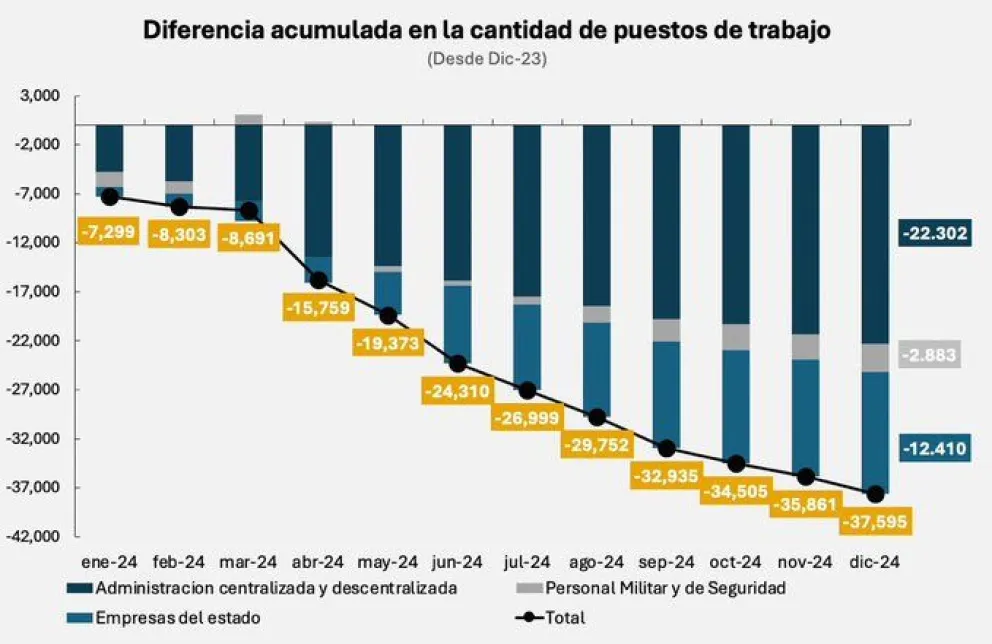 En un comunicado realizado esta mañana, el Ministro de Desregulación y Transformación del Estado, Federico Sturzenegger, confirmó que durante 2024 se produjeron 37.595 despidos de empleados estatales y defendió la medida afirmando que es uno de los objetivos de la administración libertaria porque la baja del gasto público permitió reducir impuestos.