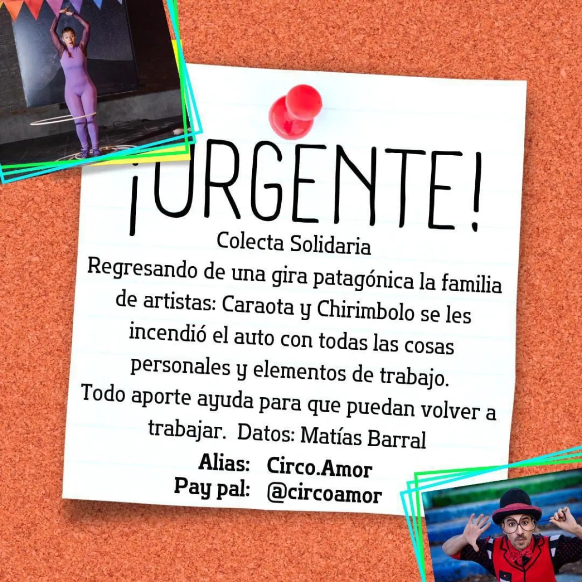 Los interesados en colaborar pueden hacerlo al alias Circo.Amor