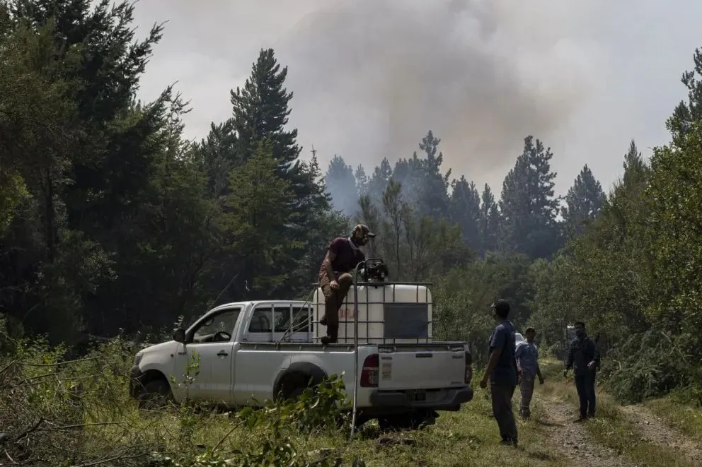 La Policía de Río Negro informó que divisaron a un grupo de personas sospechosas de iniciar focos ígneos en la zona del incendio. Los involucrados huyeron a bordo de una camioneta blanca.