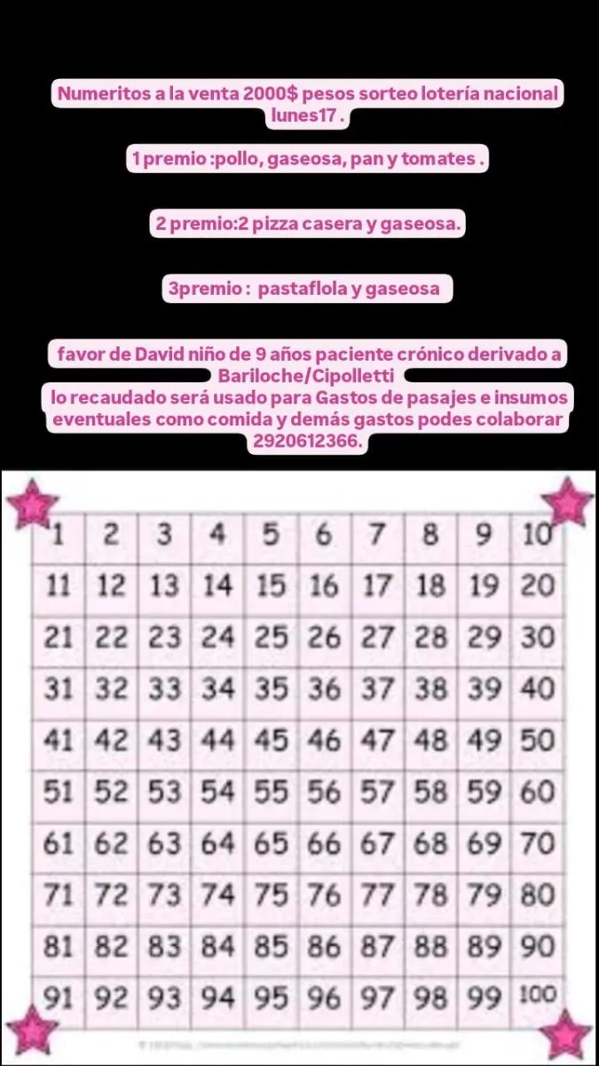 El dinero recaudado será para los pasajes de ida y vuelta a Bariloche donde David, será tratado por un médico especialista que le dará diagnóstico a una patología nueva.