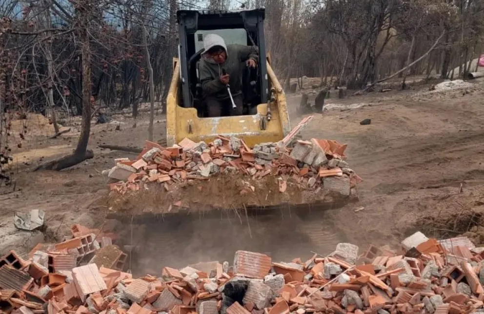 El Gobierno de Río Negro continúa con los trabajos de limpieza y remoción de escombros en las propiedades afectadas por el incendio en El Bolsón, con el objetivo de preparar los terrenos para la futura construcción de viviendas.