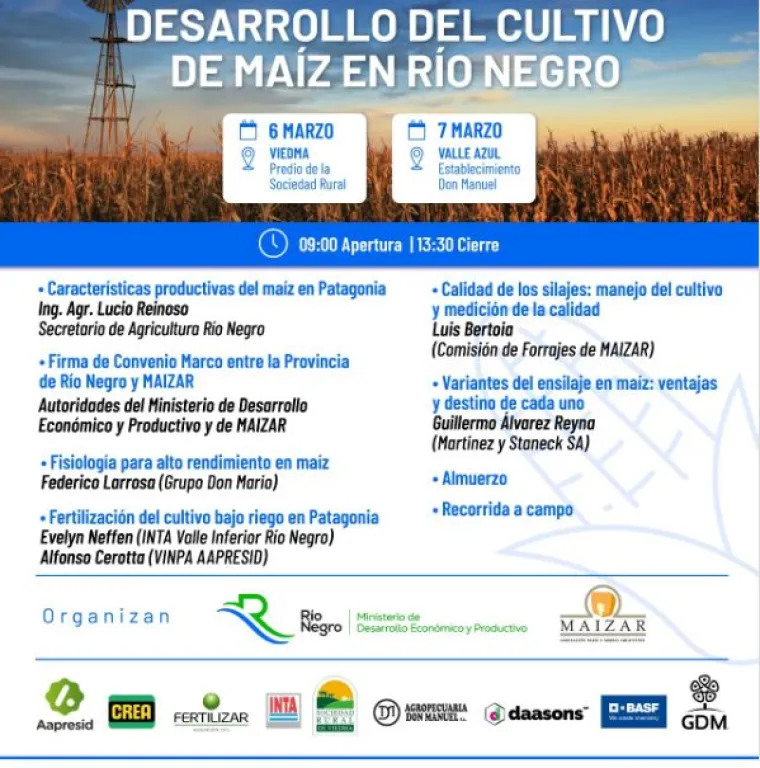"El cultivo de maíz puede expresar hoy en Río Negro pleno potencial que tiene toda la genética actualmente disponible en el mercado, con rendimientos muy superiores a los que se obtienen en la pampa húmeda, por eso apostamos a este cultivo", remarcó.