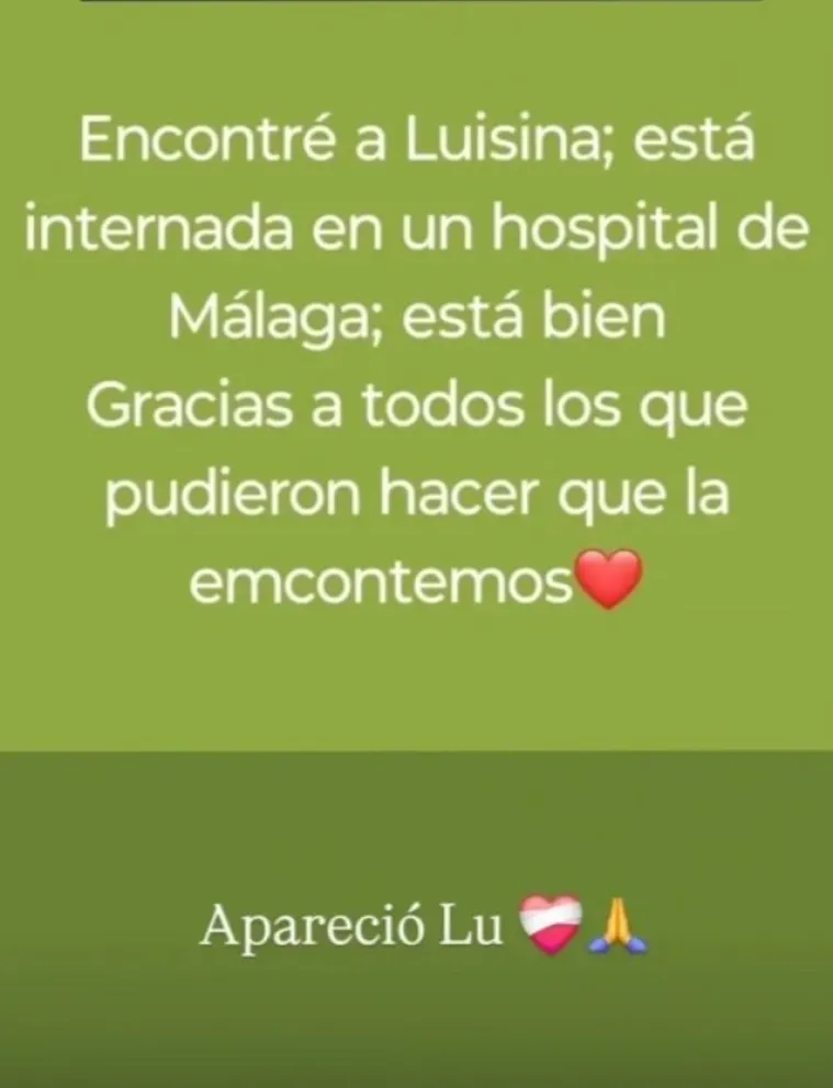 Finalmente, la joven fue encontrada en un nosocomio de Málaga, donde está internada, en buen estado de salud. Si bien no se proporcionaron detalles sobre las circunstancias de su ingreso, la noticia trajo alivio a su familia y amigos.