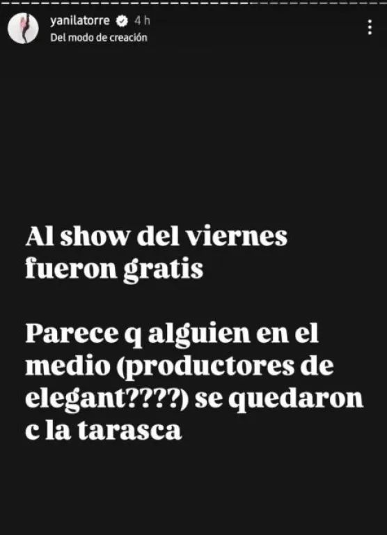 Además, reveló que Wanda no recibió ningún pago por el show realizado ese día, y sugirió que podría haber un conflicto con los productores de L-Gante, quienes habrían quedado con el dinero.