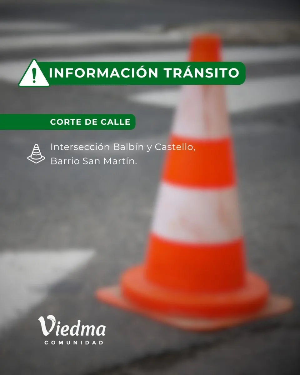 La Municipalidad de Viedma, informó que este miercoles 19, debido a una importante intervención vial, se cerrará al tránsito la calle Balbín en su intersección con la calle Castello, en el barrio San Martín.