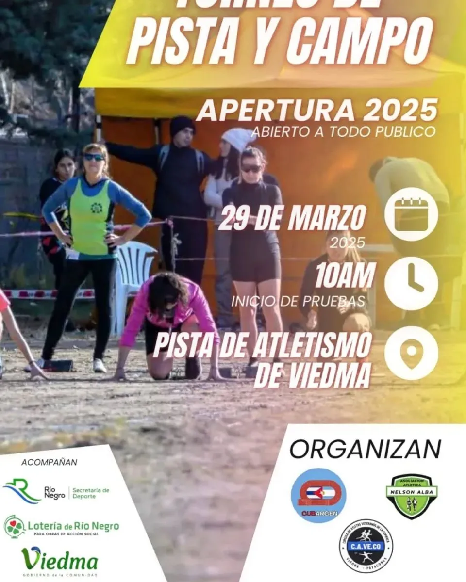 La capital rionegrina se convertirá en el epicentro del atletismo el próximo sábado 29 de marzo, cuando la Pista de Atletismo de Viedma reciba a atletas de todas las categorías para el Torneo de Pista y Campo Apertura 2025. Con un cronograma cargado de pruebas explosivas y de resistencia, se espera una jornada vibrante, donde la velocidad, la fuerza y la estrategia se pondrán a prueba en cada disciplina.