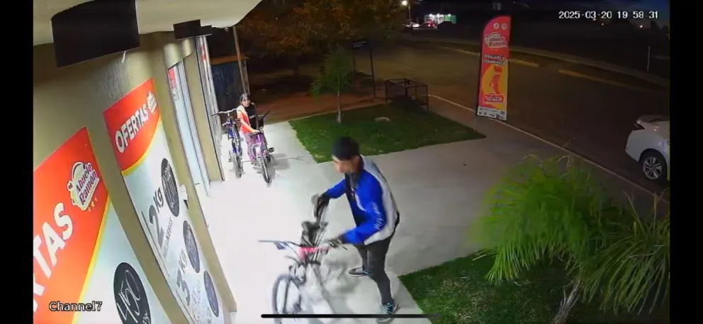 El local comercial, le proporcionó las imágenes del robo, donde se cómo el sujeto vigila la zona y se sube al rodado para adueñarse del mismo. La dueña de la bicicleta se percata a pocos metros de la huida del ladrón y lo corre.