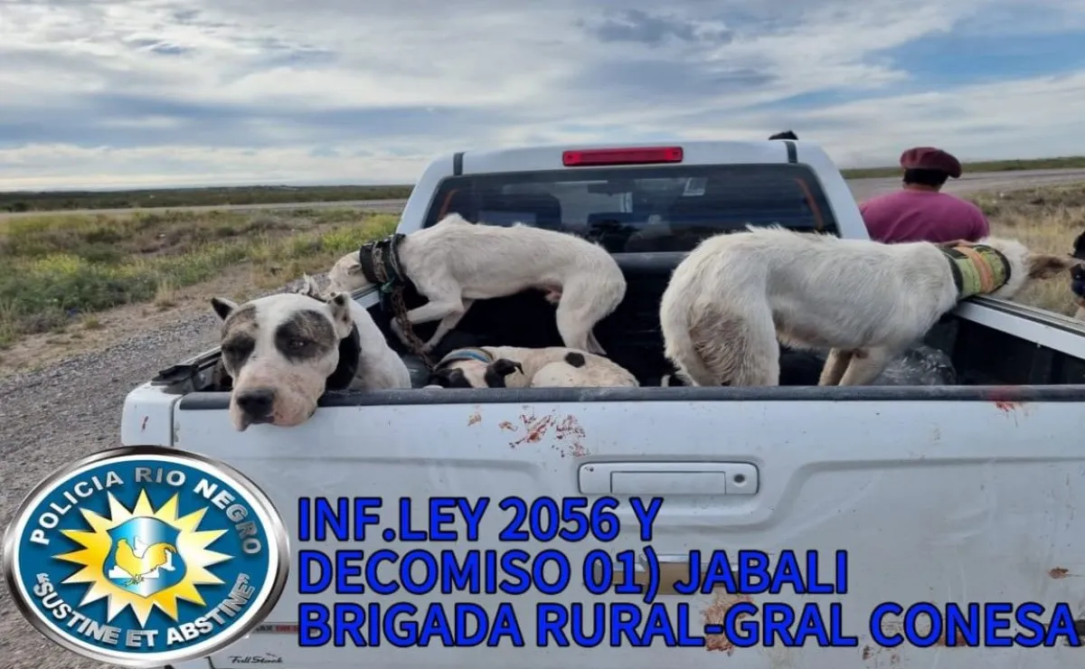 Durante la inspección del vehículo, se constató que el hombre transportaba en la caja de la camioneta seis canes y un jabalí de aproximadamente 20 kilogramos, el cual se encontraba muerto y, presuntamente, había sido cazado.