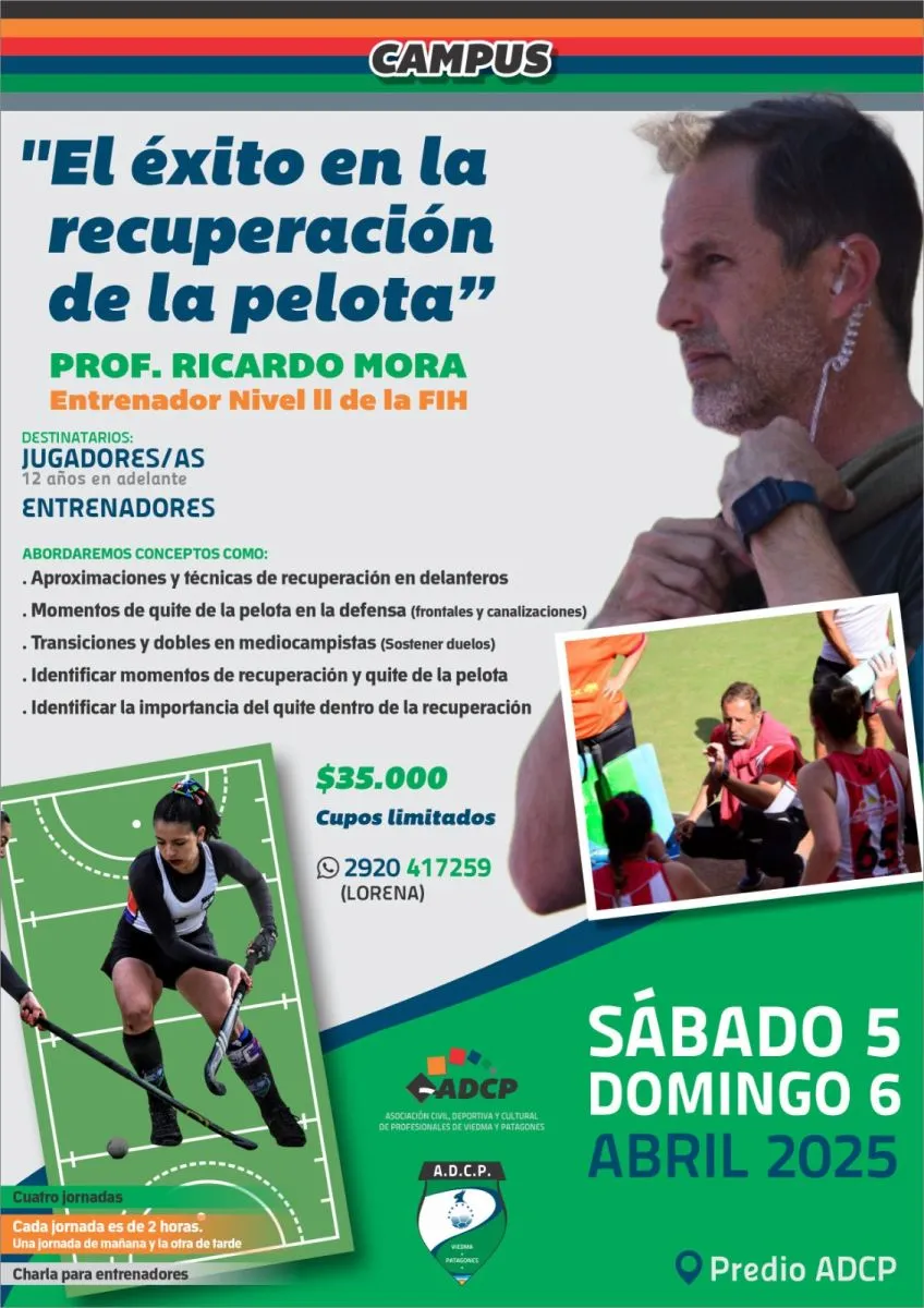Además se anunció que los días 5 y 6 de abril se realizará un Campus “El éxito en la recuperación de la pelota” dictado por el Profesor Ricardo Mora destinado a jugadores y entrenadores de hockey donde se abordarán conceptos como aproximaciones técnicas de recuperación de delanteros, transiciones y dobles en mediocampistas, momentos de quito de la pelota en defensa, identificar momentos de recuperación y quite de la pelota e identificar la importancia del quite dentro de la recuperación.