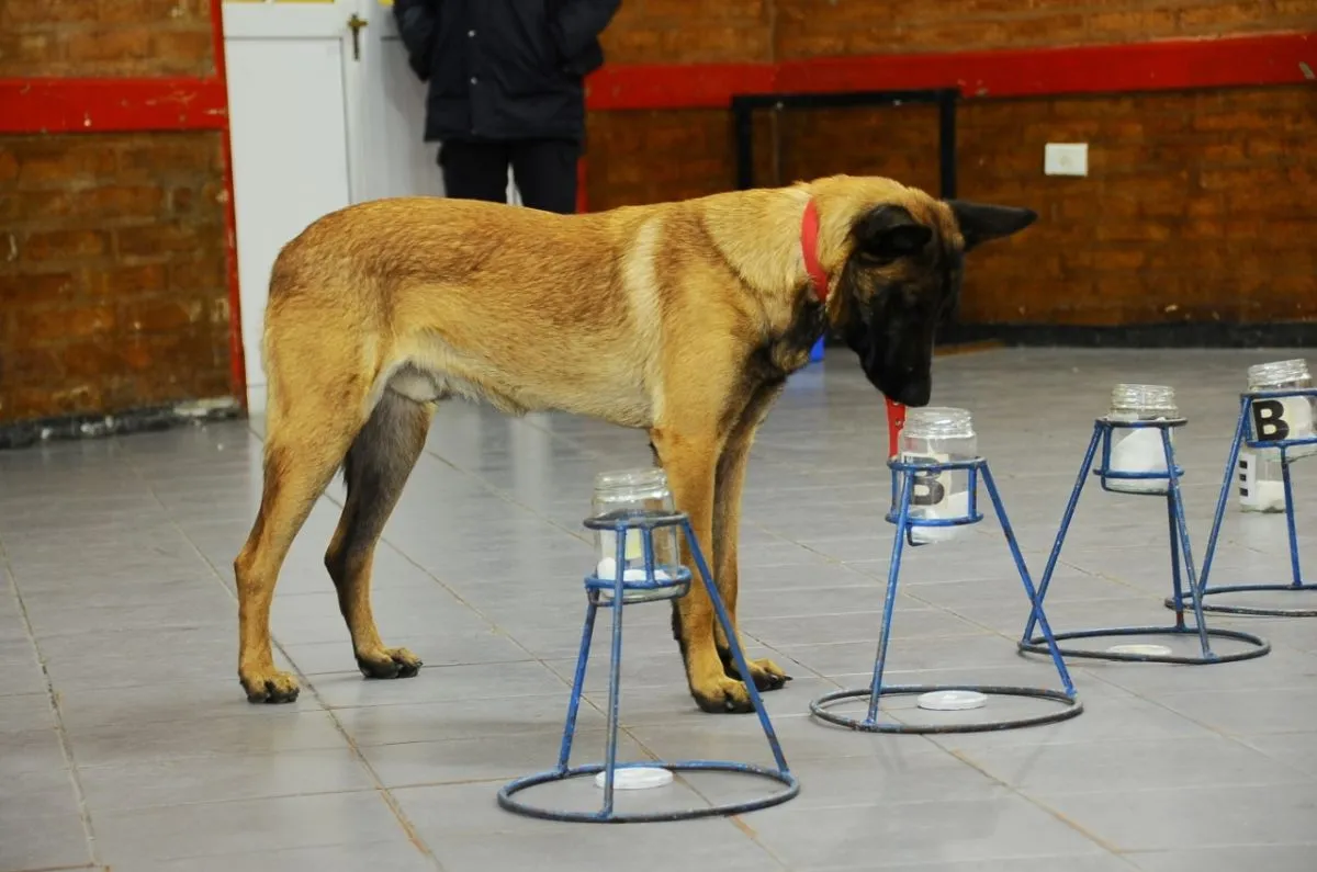 Continuando con la explicación, contó: "Después de esa técnica de rastro específico, con el resto de las muestras recolectadas en la escena se realiza el trabajo de odorología forense, que es la realización de la pericia. En un espacio cerrado, se colocan entre cinco y seis cilindros que portan frascos y dentro de ellos se introduce la muestra recolectada en la escena, respetando el protocolo de conservación, de cadena de custodia".