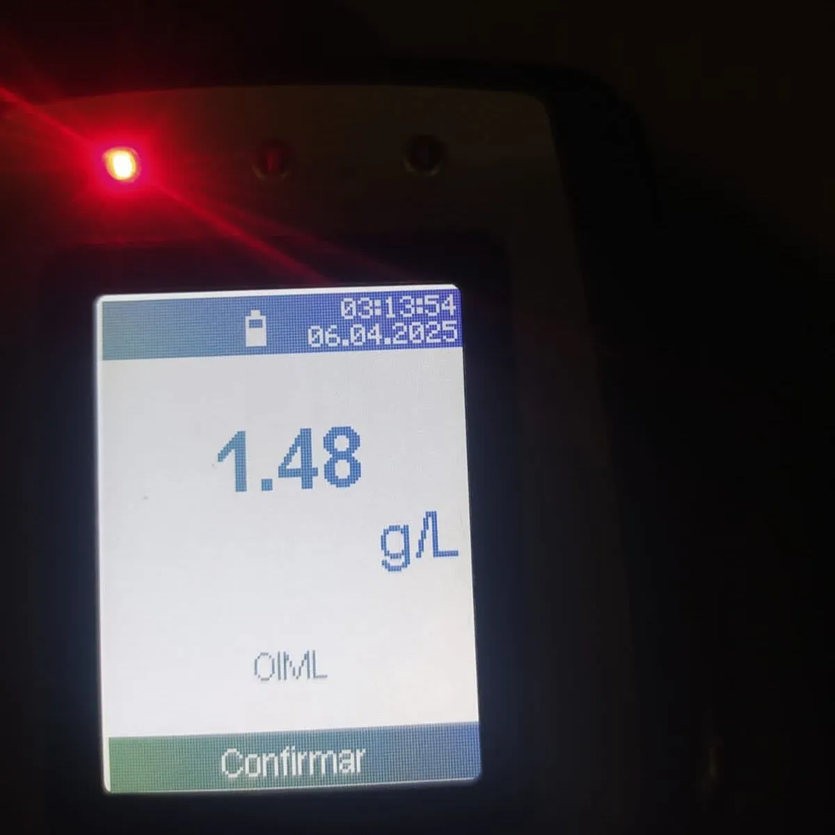 Cuando le hicieron el control de rigor a quien iba al mando del volante, le dio 1,48 gramos por litro de alcohol en sangre (g/l). Un valor considerado alto, más allá de que en esta capital y la provincia de Río Negro rige la medida alcohol cero al volante.
