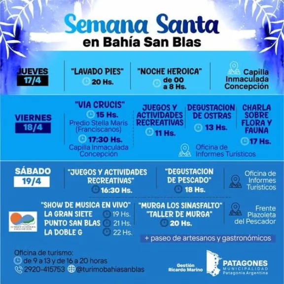 “La Semana Santa en Bahía San Blas no solo es un tiempo de reflexión, sino también una oportunidad para disfrutar de la cultura, la música y la gastronomía local”, invitaron desde el municipio.