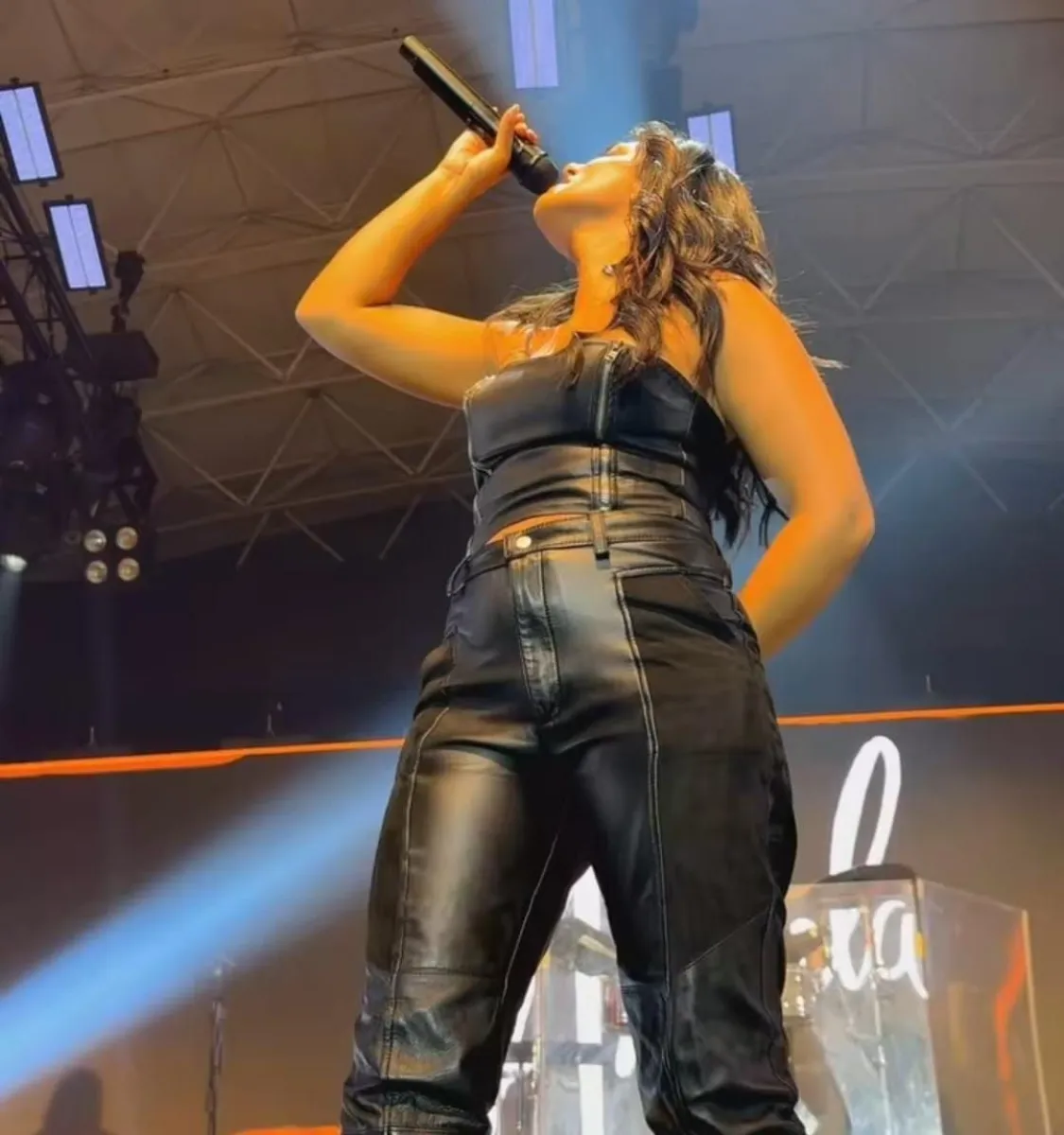 Ángela Leiva, una diosa arriba del escenario del Polideportivo de Las Grutas.