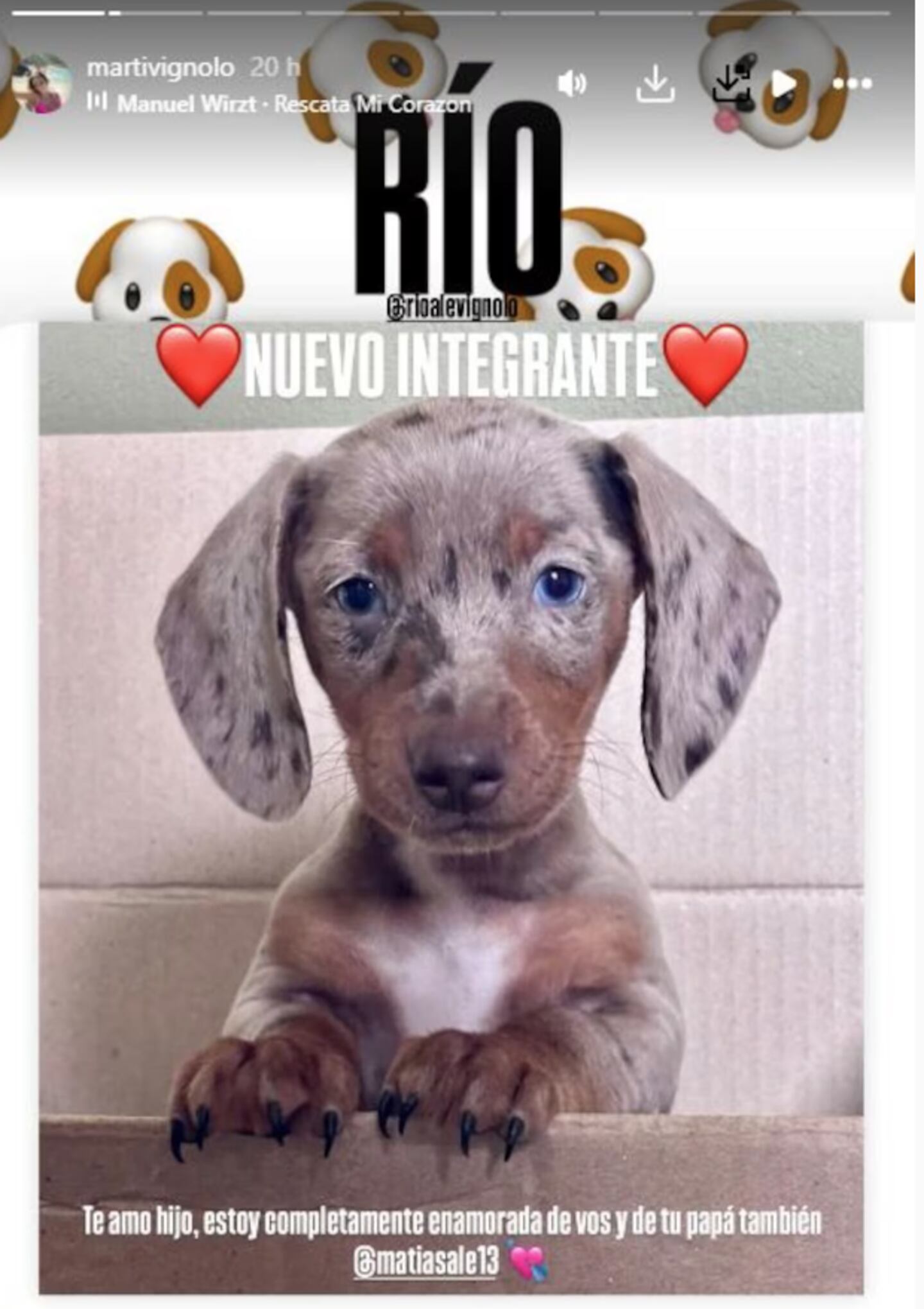 Mientras la pareja celebra la llegada del nuevo cachorrito, no dejan pasar las oportunidades para reafirmar el amor que los une. Al abrir su hogar y su corazón a Río, Matías Alé y Martina demuestran que juntos enfrentarán las nuevas etapas que el destino les depare, siempre con un compromiso de compañía y felicidad mutua. Este paso se perfila no solamente como un gesto hacia la formalidad en potenciar su proyecto de vida juntos, sino también como el inicio de momentos inolvidables en compañía de su querido nuevo integrante.
