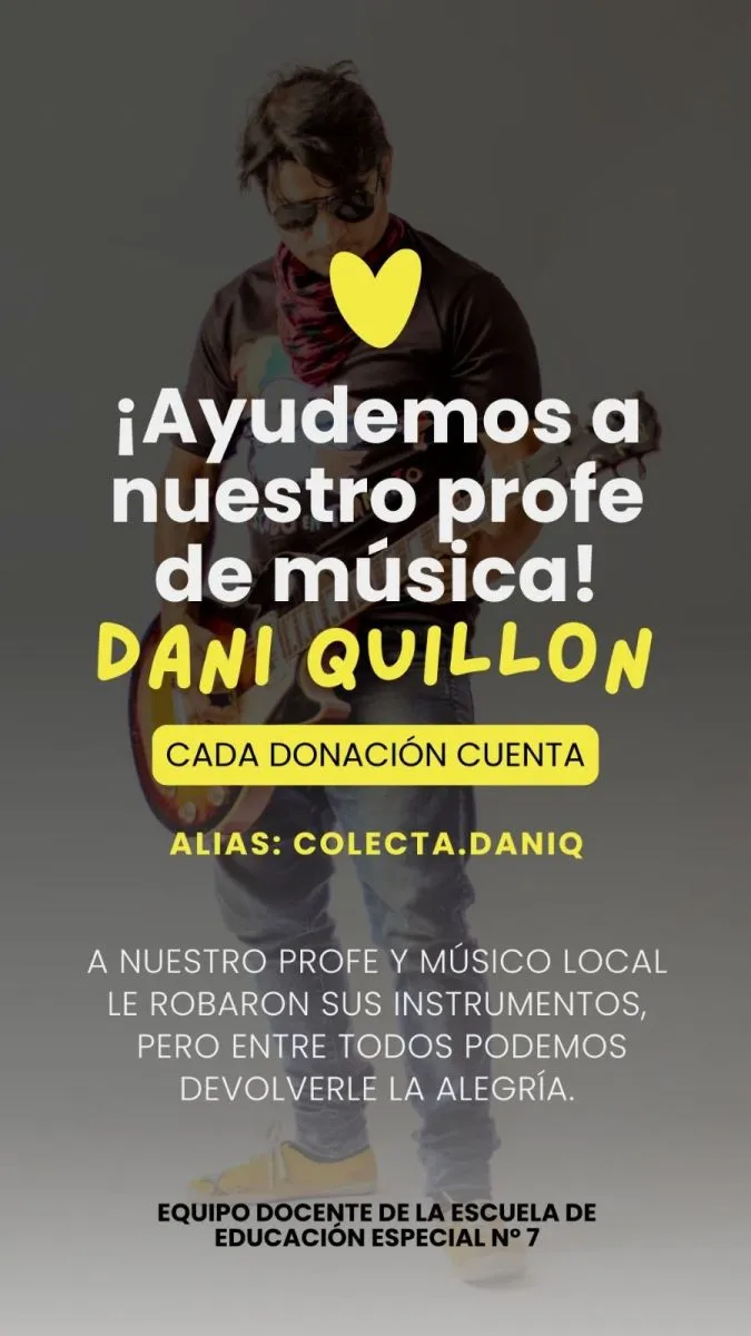 Y completaron: "Nos encontramos organizando una colecta solidaria para ayudar a nuestro querido profe, quien recientemente sufrió el robo de su guitarra, instrumentos y pertenencias personales. Estos elementos son esenciales tanto para su trabajo como docente como para su participación en una banda local de música infantil: Pescado en Tránsito".