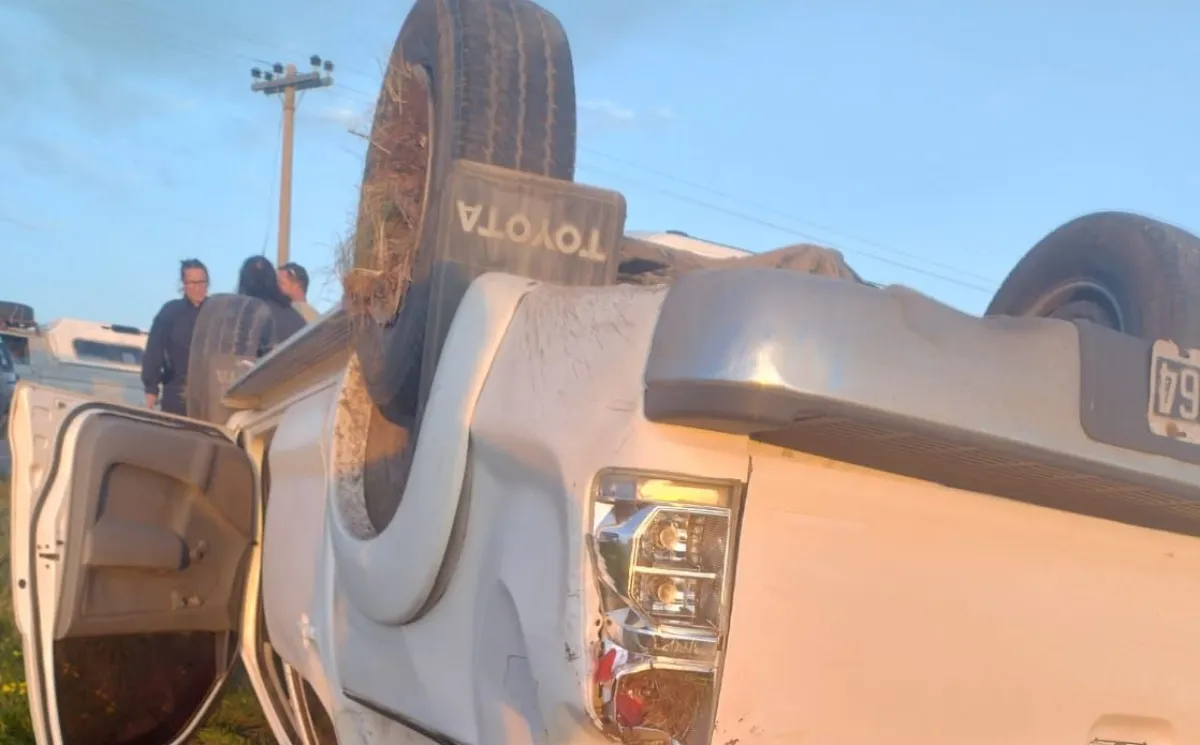 Violento vuelco de una camioneta cerca de El Cóndor y el conductor se salvó de milagro