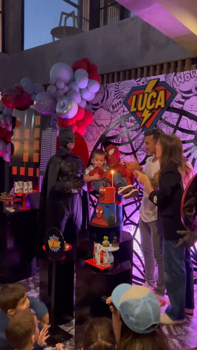 La temática elegida para la ocasión fue una unión impactante de los universos de Marvel y DC Comics, con Spiderman, Batman y Capitán América, encabezando la lista de invitados honorarios. Cada rincón del salón escogido para la celebración se transformó en una escena sacada de un cómic inolvidable, decorado con globos coloridos, gigantografías de héroes y una torta de dos pisos que no dejaba dudas de quién era el superhéroe favorito de Luca: nada más y nada menos que el asombroso Hombre Araña.