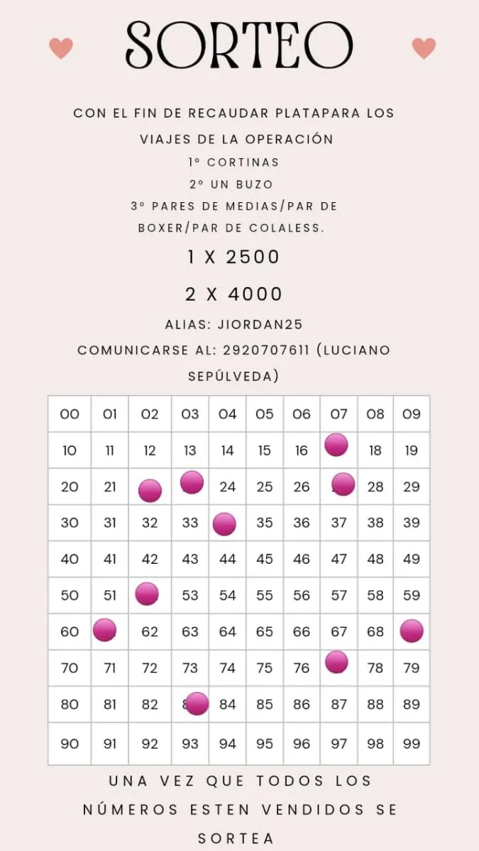 Para afrontar estos costos, la familia organizó una rifa solidaria con el objetivo de reunir aproximadamente $250.000. Los interesados en colaborar, pueden hacerlo comunicándose al 02920-707611, o donando al alias JIORDAN25.