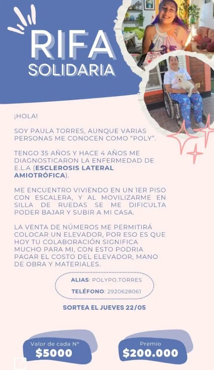 Los interesados en colaborar con Paula pueden hacerlo al alias  POLYPO.TORRES o comunicándose al 02920-628061.
