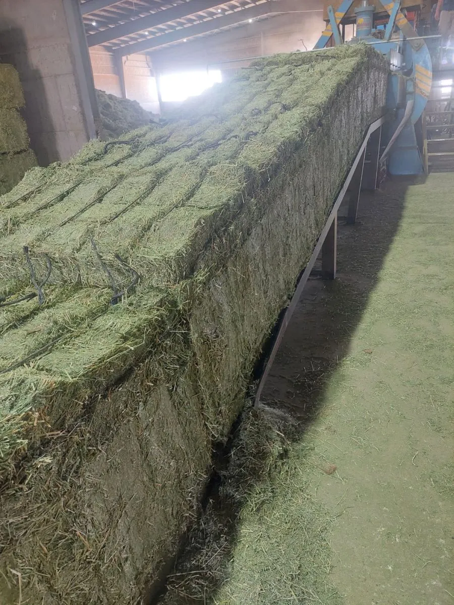En este contexto, la logística y la eficiencia operativa son claves. La planta recibe camiones con megafardos de alfalfa que se transforman, tras un proceso industrial, en forraje exportable. La producción diaria ronda las 150 toneladas entre las 2 plantas, pero puede duplicarse fácilmente.