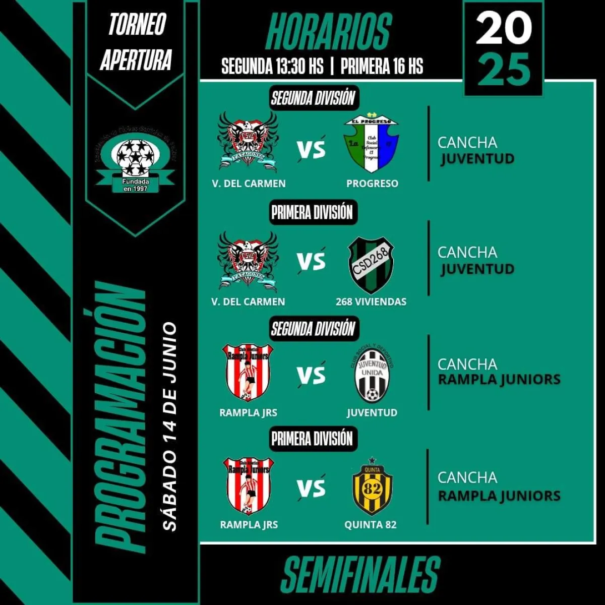 Por el otro lado de la llave, Rampla Juniors se despachó por 4 a 0 ante Villa Linch, mientras que Quinta 82 se impuso por 3 a 1 a 150 viviendas para conformar la otra semifinal.
