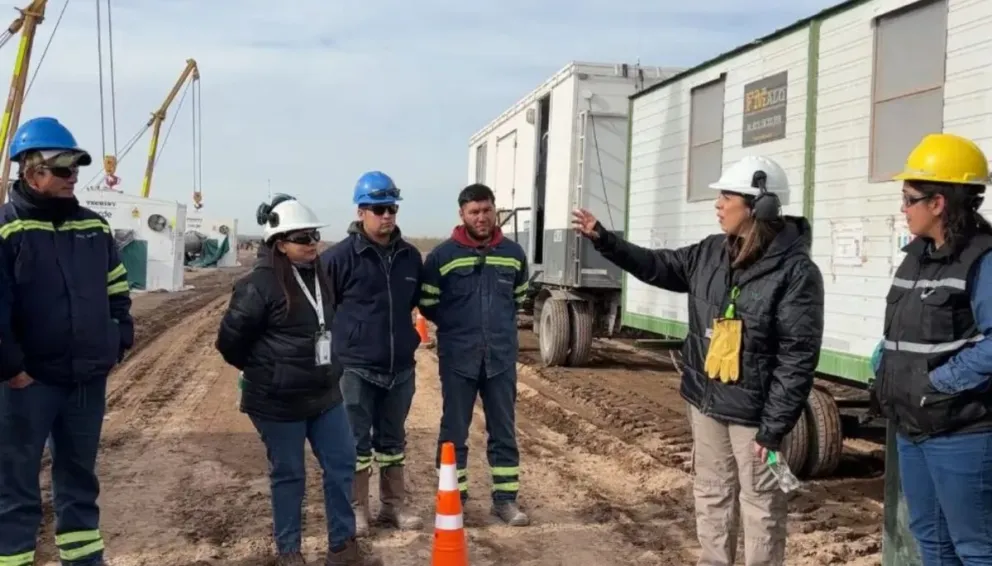 La titular del organismo, María Martha Avilez, junto al cuerpo de inspectores, recorrió el campamento del oleoducto Vaca Muerta Oil Sur (VMOS) en Chichinales, una obra estratégica que conectará los yacimientos neuquinos con Punta Colorada.