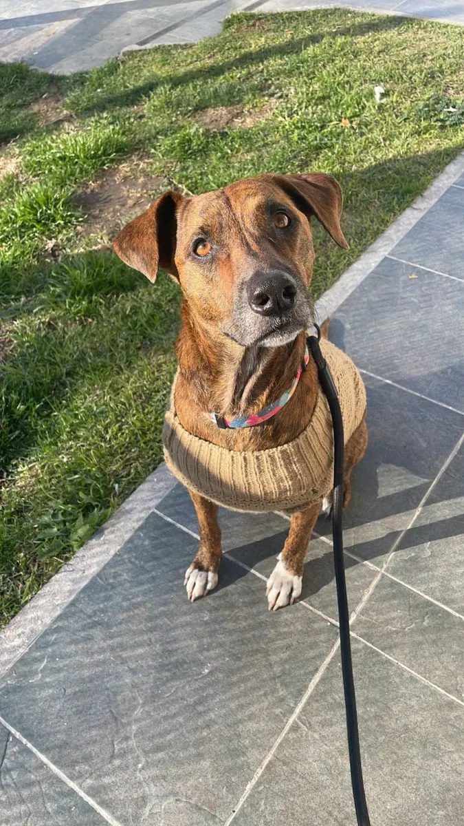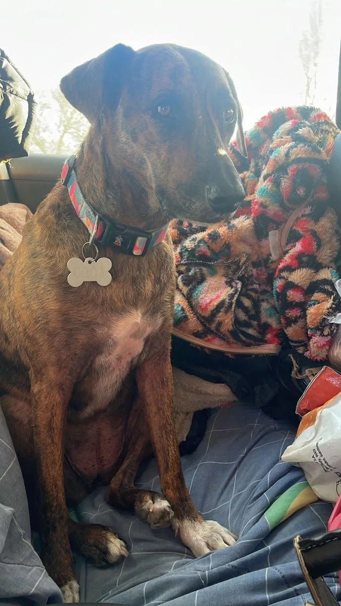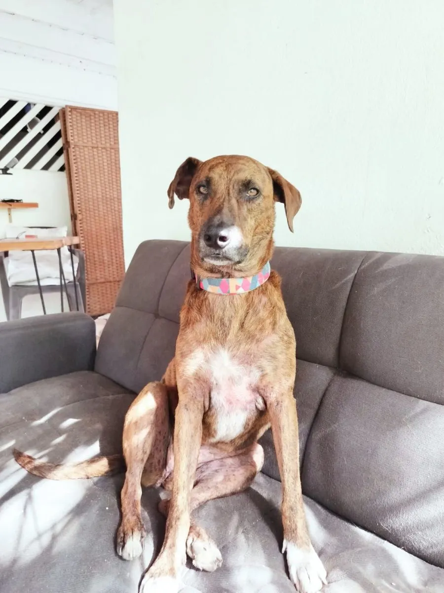 Coca, perra perdida en Viedma tras un largo viaje desde Costa Rica.