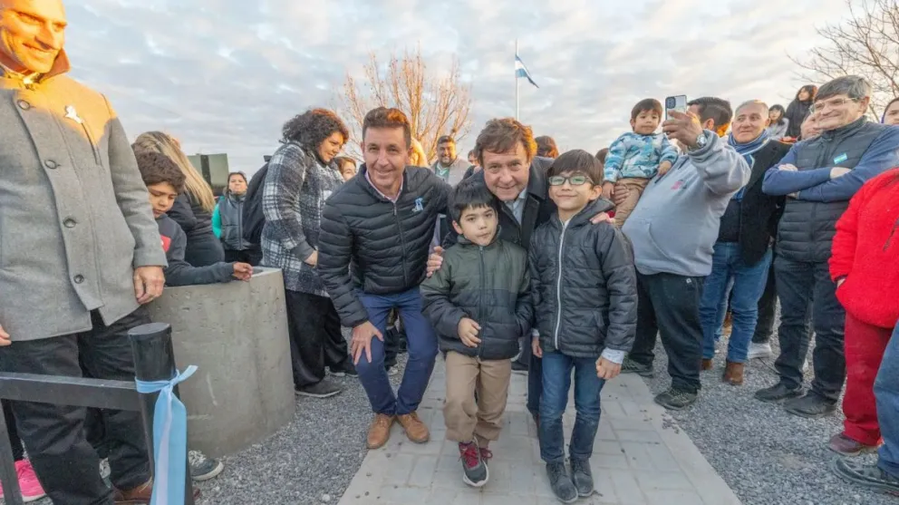 Uno de los momentos más emotivos de la jornada fue la inauguración de la remodelación de la Plaza del barrio Maldonado y la apertura de la Plaza del barrio Las Bardas, un espacio inclusivo y moderno que contempla juegos sensoriales, áreas deportivas, sectores para personas mayores y vegetación nativa. La inversión provincial fue de $102 millones.