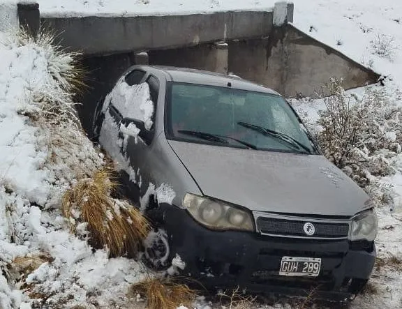 La nieve está poniendo en peligro a quienes transitan por la Línea Sur de Río Negro. Ayer, alrededor de las 10:00, un vehículo despistó cayendo en forma riesgosa dentro de una alcantarilla en el kilómetro 248 de la ruta nacional 23, a la altura de Sierra Colorada.