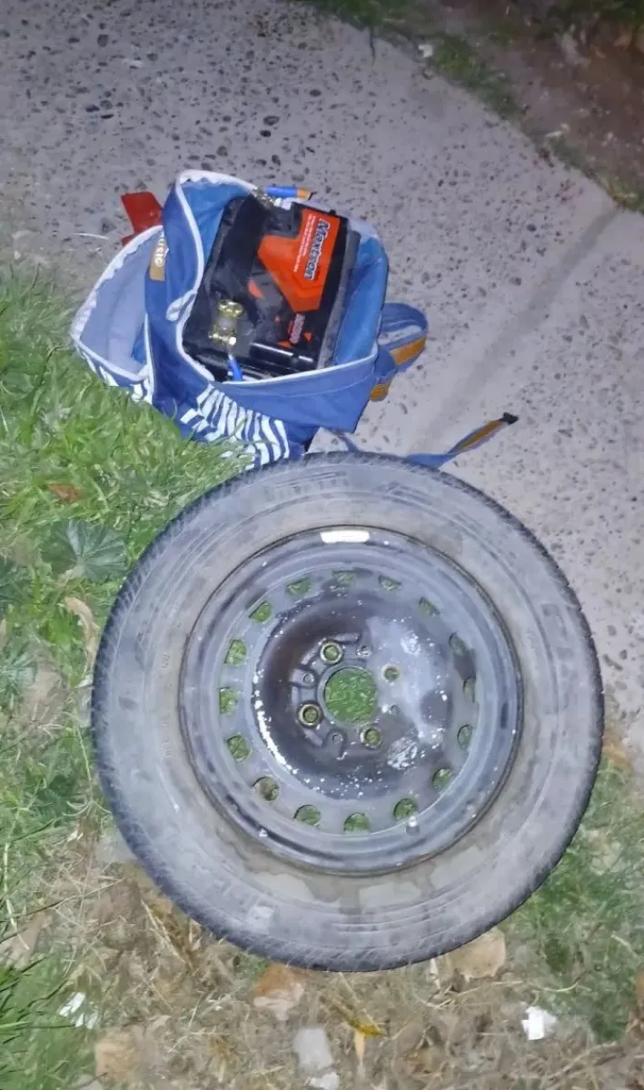 En este marco, se puso en conocimiento de la situación a policías de la comisaría 34, quienes observaron al ladrón huyendo con la rueda sobre sus pasos. Llegó hasta la Escalera 23 del barrio América, arrojó la rueda contra un efectivo para poder escapar y se le cayó una mochila, que contenía la batería robada.
