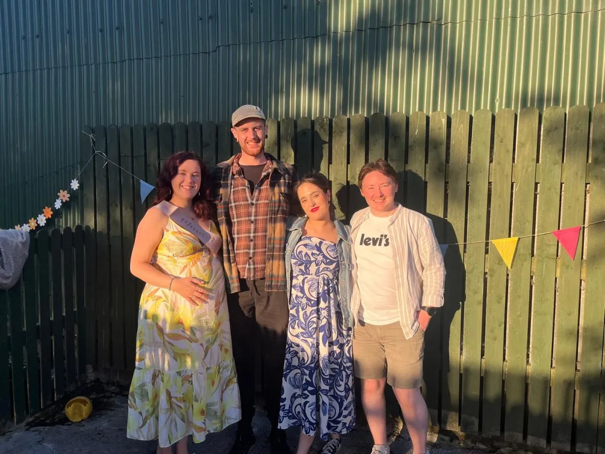 "Con mi familia irlandesa, en el baby shower de mi amiga  Clodagh (izquierda) y Shane (derecha) junto a Brian, mi compañero irlandés"