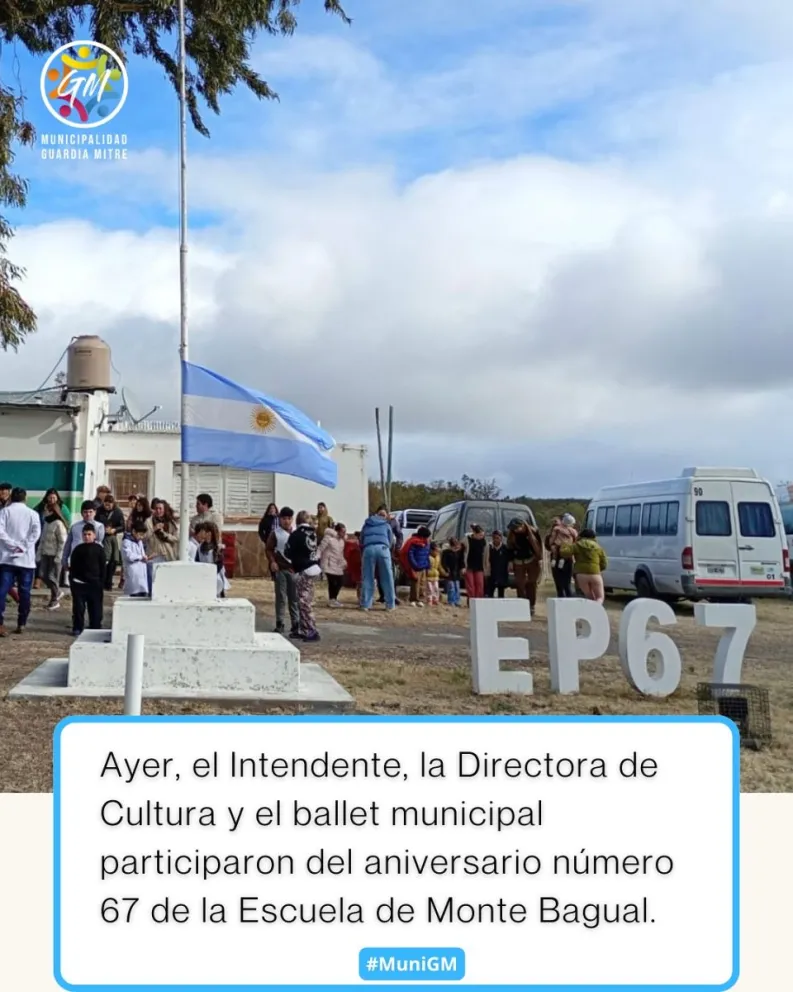 Ubicada en el kilómetro 19,5 de la Ruta Nacional Nº 250, la escuelita rural es un ejemplo de esfuerzo y compromiso con la educación en contextos alejados de los centros urbanos. Así lo destacó el intendente de Guardia Mitre, Miguel Evans, quien acompañó el acto junto a la directora de Cultura y al ballet municipal: “La escuela de Monte Bagual es un ejemplo de esfuerzo y significa la oportunidad de educarse para quienes viven alejados de los centros urbanos”, expresó.