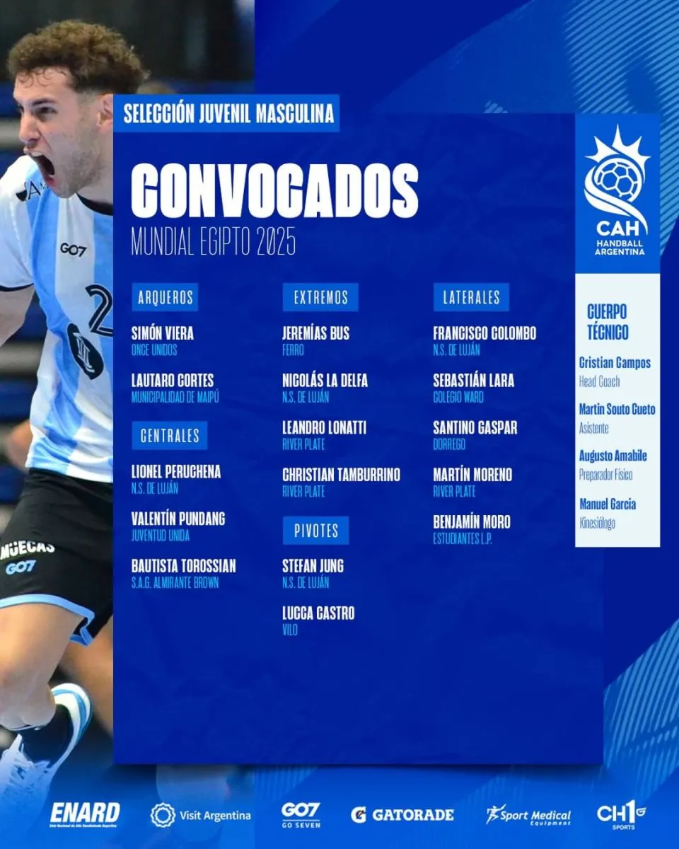 La Confederación Argentina de Handball hizo pública la nómina de jugadores que representarán al país en la próxima cita mundialista y que ya se encuentran bajo las órdenes de Cristian Campos en el Cenard.