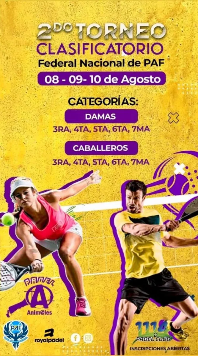 Llegó el momento del segundo clasificatorio de Pádel, rumbo al Federal Nacional de la PAF, organizado en esta instancia local por Pádel Animales y que contará con la participación de 174 parejas, un total de 348 inscriptos en busca de quedarse con uno de los lugares de la selección rionegrina.