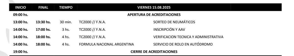 La carrera será en el Autódromo Parque Ciudad de General Roca y la extensión del circuito será de 3.625 metros en sentido contrario de las agujas del reloj y según el cronograma que incluyen shakedown, entrenamientos 1 y 2, clasificación, tanques llenos y carrera final.