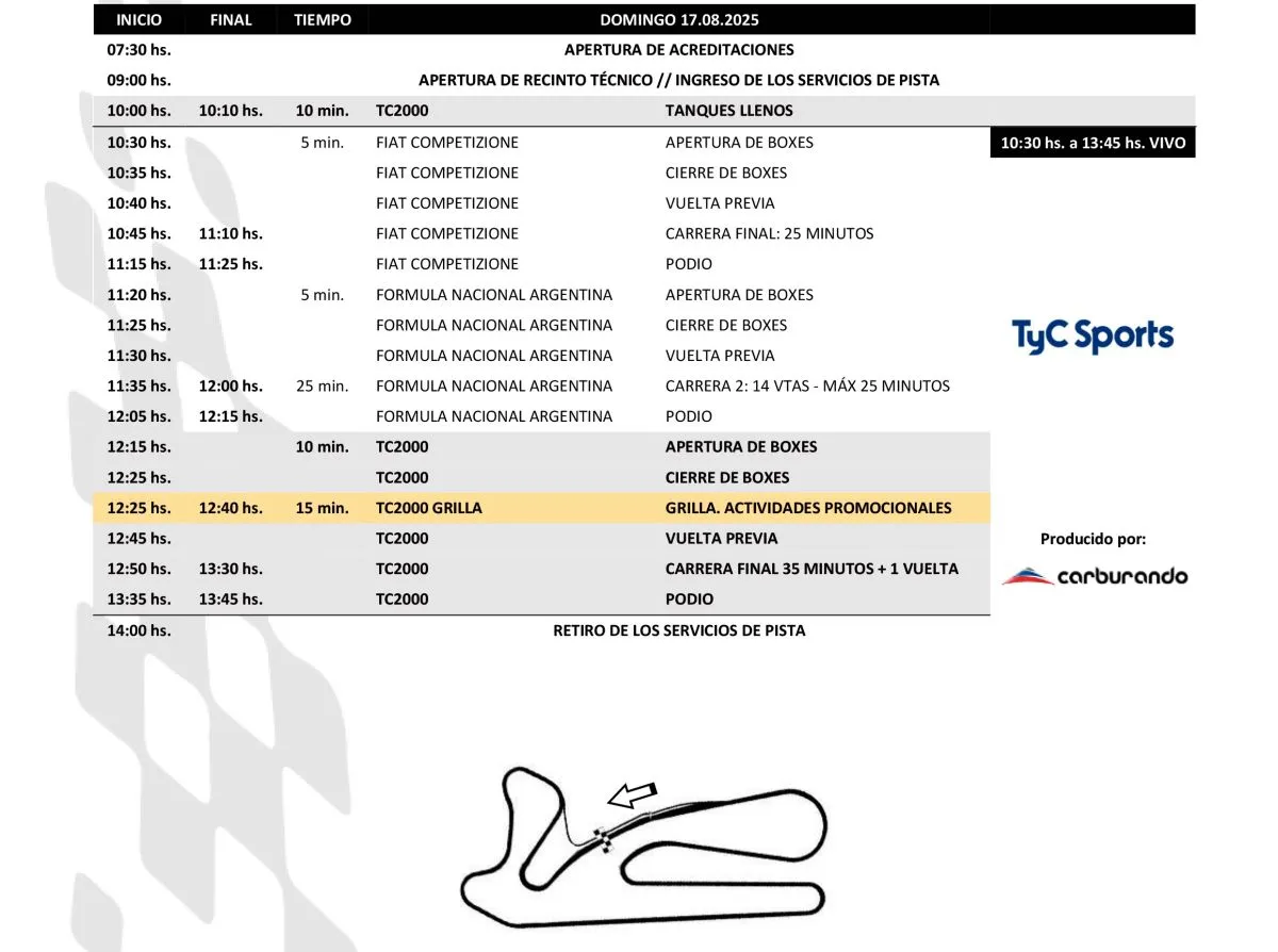Tras seis años de ausencia, el TC2000 vuelve a rugir en General Roca. El próximo 15, 16 y 17 de agosto de 2025, el Autódromo Parque Ciudad será escenario de la sexta fecha del 46º Campeonato Argentino de TC2000 YPF Infinia, con la presencia de los principales pilotos y escuderías del país, además de invitados internacionales.