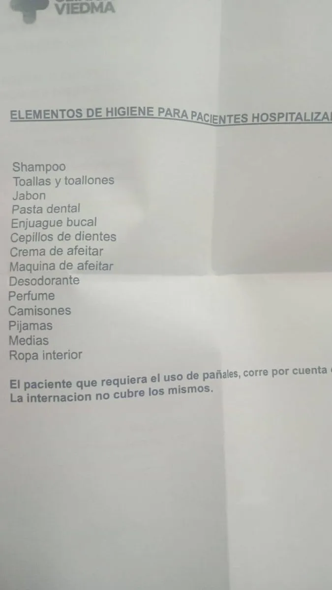 Algunos de los artículos que necesitan son shampoo, toallas, jabón, pasta dental, enjuague bucal, cepillos de dientes, desodorante, crema y máquina de afeitar, perfume, camisones, pijamas, medias, ropa interior y pañales para adultos.