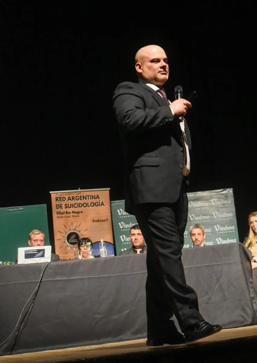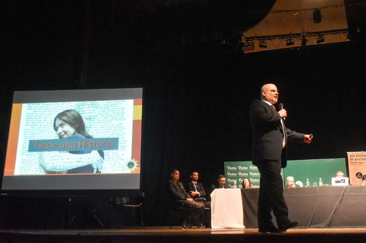 Uno de los oradores, en una sala llena con más de 500 personas, fue el negociador en situaciones de crisis y suicidólogo Marcelo Mandri. En este sentido, dijo: "Vamos a hablar puntualmente del campo suicidológico. Suicidio es la acción de quitarse la vida en forma voluntaria. Se dice quitarse la vida y no querer morirse, porque a la persona con conducta suicida le pesa seguir viviendo, le pesa tanto que le cuesta la vida. Piensa en cómo quitarse la vida para salir de ese sufrimiento".