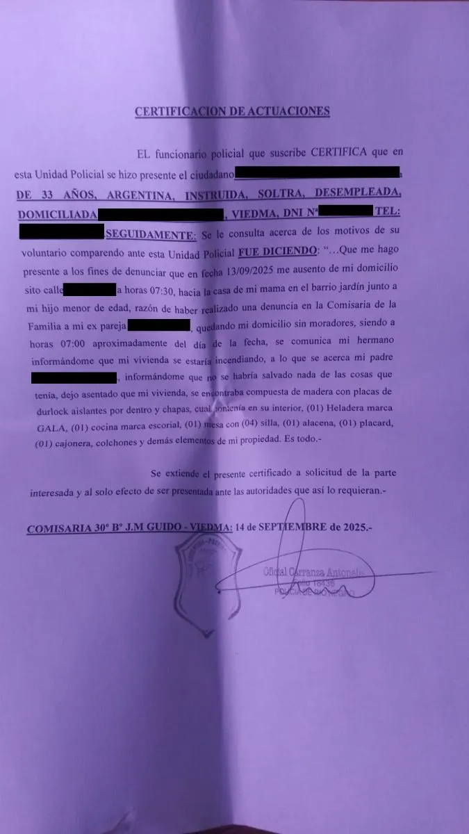 Consultada sobre el inicio de todo, dijo: “El sábado a la madruga sufro un hecho de violencia de género de quien era mi pareja, que es policía. De la Unidad 30 me dejaron a resguardo en la casa de mi madre, y no en mi casa porque es jurisdicción de la Comisaría en la que trabaja él”.